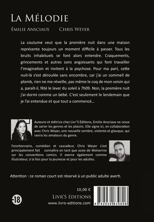 La coutume veut que la première nuit dans une maison représente toujours un moment difficile à passer. Tous les bruits inhabituels se font alors entendre. Craquements, grincements et autres sons angoissants qui font travailler l'imagination et invitent à la psychose. Pour ma part, cette nuit-là s'est déroulée sans encombre, car j'ai un sommeil de plomb, rien ne me réveille, pas même le coq de mon voisin qui a, paraît-il, fêté le lever du soleil à 7 h 09. Non, la première nuit j'ai dormi comme un bébé. C'est seulement le lendemain que je l'ai entendue et que tout a commencé...