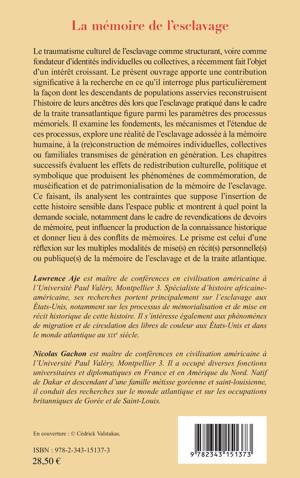 Le traumatisme culturel de l’esclavage comme structurant, voire comme fondateur d’identités individuelles ou collective a récemment fait l’objet d’un intérêt croissant. L'ouvrage interroge la façon dont les descendants de populations asservies reconstruisent l’histoire de leurs ancêtres ; il évalue les effets culturels, politiques et symboliques que produisent les phénomènes de commémoration, de muséification et de patrimonialisation de la mémoire de l’esclavage ainsi que les contraintes que suppose l’insertion de cette histoire dans l’espace public.