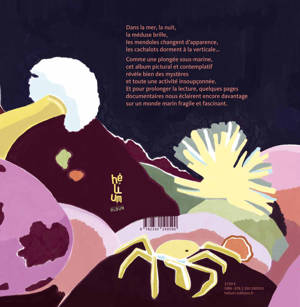 Une somptueuse plongée dans la mer pour découvrir les incroyables activités nocturnes des êtres aquatiques : du déplacement des anémones par un crabe affairé à la pollinisation des herbiers, en passant par la ponte des tortues Luth et l'impressionnante migration verticale des organismes affamés des profondeurs. Certains poissons dorment les yeux ouverts, d'autres à moitié, à la verticale ou à l'envers. Tout est mystères dans ce livre pictural, qui comporte aussi une annexe documentaire pour mieux les mettre au jour.