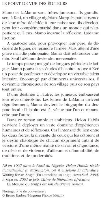 Dans ce roman ample et ambitieux, Helon Habila parvient à déployer un vaste domaine d'expériences humaines et de réflexions. Car l'intensité du lien entre les deux frères, la diversité de ceux qui les côtoient et le destin chaotique de chacun expriment autant de versions d'une même réalité de savoir et d'ignorance, de désir et de violence, d'ailleurs et d'immobilité, de traditions et de modernités.