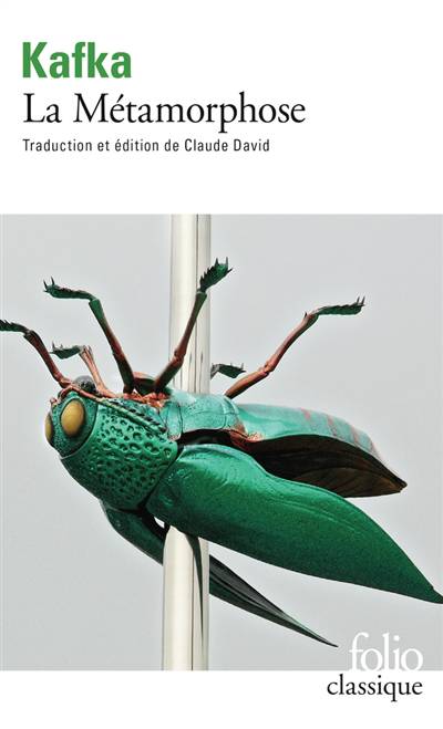 "Lorsque Gregor Samsa s'éveilla un matin au sortir de rêves agités, il se retrouva dans son lit changé en un énorme cancrelat. [...] "Que m'est-il arrivé ?" pensa-t-il. Ce n'était pas un rêve. [...] "Et si je continuais un peu à dormir et oubliais toutes ces bêtises", pensa-t-il, mais cela était tout à fait irréalisable, car il avait coutume de dormir sur le côté droit et il lui était impossible, dans son état actuel, de se mettre dans cette position. Il avait beau se jeter de toutes ses forces sur le côté droit, il rebondissait sans cesse sur le dos."