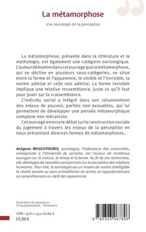 La métamorphose, présente dans la littérature et la mythologie, est aussi une catégorie sociologique. Elle se situe entre la forme et l'apparence, le visible et l'invisible, la norme admise et celle non admise. L'auteur la présente dans le monde contemporain en perspective de la réalité sociale, et l'introduit comme moyen de stratégie pour amener sa dimension sociologique. L'ouvrage amorce le débat sur la conception sociale du jugement à travers les enjeux de la perception en présentant les diverses formes de la métamorphose.