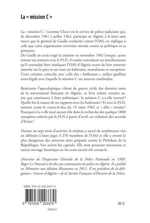 La «mission C» (comme choc) est le service de police judiciaire qui, de décembre 1961 à juillet 1962, participa en Algérie à la lutte sans merci que le général de Gaulle conduisit contre l'OAS, en réplique à celle que cette organisation terroriste menait contre sa politique et sa personne. Restituant l'apocalyptique climat de guerre civile des derniers mois de la souveraineté française en Algérie, ce livre éclaire certains sujets qui continuent à faire polémique : la mission C a-t-elle torturé ? Quelle fut la nature de ses rapports avec les barbouzes ? Et avec le FLN, ennemi avant le cessez-le-feu du 19 mars 1962 et «allié» ensuite ? Pourquoi n'a-t-elle joué aucun rôle dans la recherche des quelque 1800 européens enlevés par le FLN à partir d'avril, en violation des accords d'Evian ?