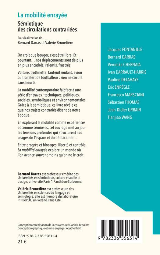 On croit que bouger, c'est être libre. Et pourtant... nos déplacements sont de plus en plus encadrés, ralentis, frustrés. Voiture, trottinette, fauteuil roulant, avion ou transfert de footballeur: rien ne circule sans heurts. La mobilité contemporaine fait face à une série d'entraves: techniques, politiques, sociales, symboliques et environnementales. Grâce à la sémiotique, ce livre révèle ce que nos trajets contrariés disent de notre époque. En explorant la mobilité comme expériences et comme sémioses, cet ouvrage met au jour les tensions profondes qui structurent nos usages de l'espace et du déplacement. Entre progrès et blocages, liberté et contrôle, La mobilité enrayée explore un monde où l'on avance souvent moins qu'on ne le croit.