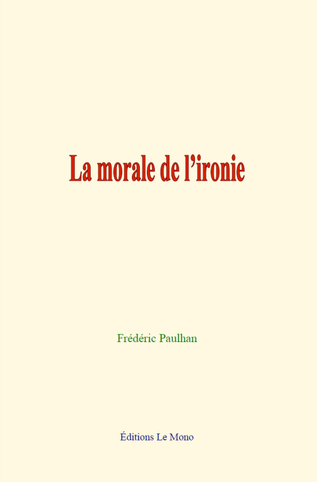 L’ironie est une forme du mensonge. C’est un mensonge avec lequel on ne cherche pas toujours à tromper, encore que l’on y arrive souvent. Elle suppose, comme tout mensonge, une contradiction entre l’expression et une partie au moins de la pensée. En général son auteur connaît cette contradiction, même il s’y complaît, il en apprécie la saveur et la portée, et il s’en sert pour quelque fin esthétique ou pratique.