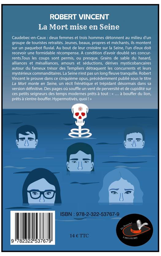 Sur un bateau de croisière en Seine rebaptisé pour l'occasion La Templière, cinq cadres dynamiques de la société bancaire Eurotas participent à une murder party et jeu de rôle sur le thème du trésor perdu des Templiers, dont l'enjeu, une promotion exceptionnelle en plus de récompenses financières, excite les passions. Qui de ces cinq ambitieux jeunes gens, deux femmes et trois hommes l'emportera? Tous les coups étant permis ou presque, la croisière vire au drame. La Seine n'est pas un long fleuve tranquille. Robert Vincent le prouve dans ce cinquième opus, précédemment publié sous le titre La Mort monte en seine, récit trépidant et frénétique désormais dans sa version définitive. Sans être le protagoniste principal, le commandant Georges Faidherbe, présent dans les romans antérieurs, y fait une apparition décisive pour démêler l'imbroglio des faux-semblants.
