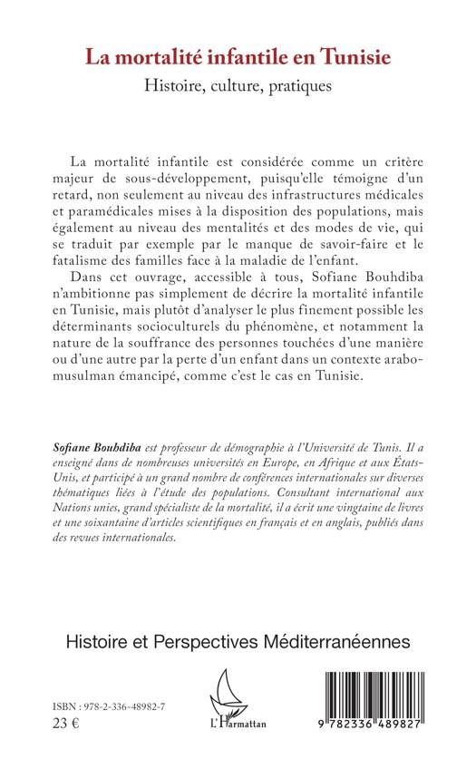 La mortalité infantile est considérée comme un critère majeur de sous-développement, puisqu'elle témoigne d'un retard, non seulement au niveau des infrastructures médicales et paramédicales mises à la disposition des populations, mais également au niveau des mentalités et des modes de vie, qui se traduit par exemple par le manque de savoir-faire et le fatalisme des familles face à la maladie de l'enfant. Dans cet ouvrage, accessible à tous, Sofiane Bouhdiba n'ambitionne pas simplement de décrire la mortalité infantile en Tunisie, mais plutôt d'analyser le plus finement possible les déterminants socioculturels du phénomène, et notamment la nature de la souffrance des personnes touchées d'une manière ou d'une autre par la perte d'un enfant dans un contexte arabo-musulman émancipé, comme c'est le cas en Tunisie.
