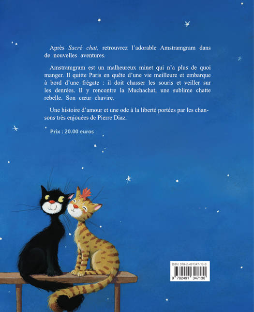 Le chat Amstramgram embarque à bord d'une frégate pour veiller sur les denrées. Alors qu'il chasse les souris, il rencontre la Muchachat. Son cœur chavire… Une histoire d'amour et une ode à la liberté portées par les chansons très enjouées de Pierre Diaz. Un album avec musique téléchargeable aux illustrations vives qui aborde sous un angle léger l'histoire des colonies espagnoles et fait découvrir aux enfants le rôle étonnant des chats à bord des bateaux.