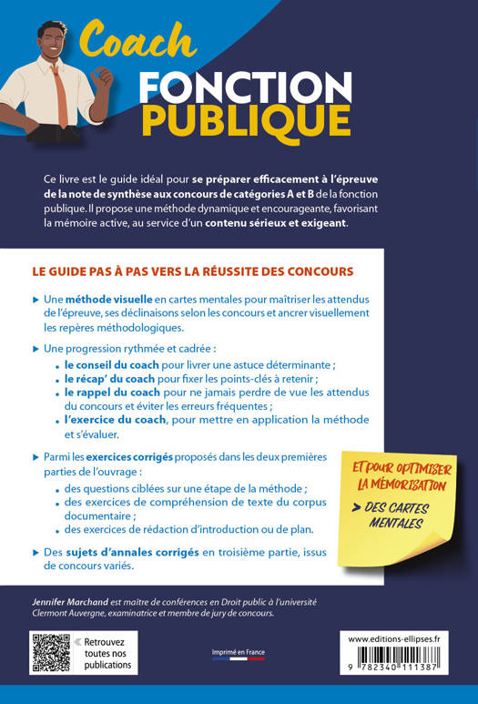 Ce livre est le guide idéal pour se préparer efficacement à l'épreuve de la note de synthèse aux concours de catégorie A et B de la fonction publique. Il propose une méthode dynamique et encourageante et favorise la mémoire active, au service d’un contenu sérieux et exigeant.