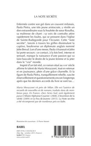 Dans la Milan du XVIIIe siècle, l'histoire de Paola Pietra, religieuse malgré elle, qui découvre, grâce au chant et à sa sensualité, un autre monde et sa propre liberté. Une oeuvre qui entraîne le lecteur dans un jeu subtil avec les codes de la grande tradition romanesque.