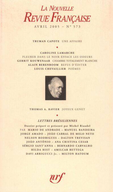Truman Capote, Une affaire Caroline Lamarche, Pleurer dans le noir efface les odeurs Gerrit Kouwenaar, Chambre totalement blanche Alain Berenboom, Refus d'éditer ou La souffrance du dibouk Louis Chevaillier, Poèmes Thomas A. Ravier, Joyeux Genet - Post-scriptum