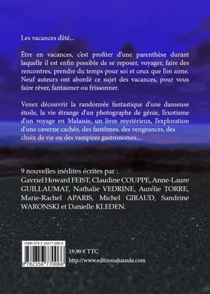 Être en vacances, c’est profiter d’une parenthèse durant laquelle il est enfin possible de se reposer, voyager, faire des rencontres, prendre du temps pour soi et ceux que l’on aime. Neuf auteurs ont abordé ce sujet des vacances, pour vous faire rêver, fantasmer ou frissonner.