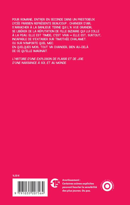 Pour Romane, entrer en seconde dans un prestigieux lycée parisien représente beaucoup : changer d'air, s'arracher à la banlieue terne qui l'a vue grandir, se libérer de la réputation de fille bizarre qui lui colle à la peau. Elle est timide, c'est vrai — elle est, surtout, incapable de s'extasier sur Timothée Chalamet. Ou sur n'importe quel mec. En quelques mois, tout va changer, bien au- delà de ce qu'elle imaginait.