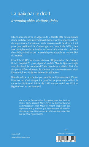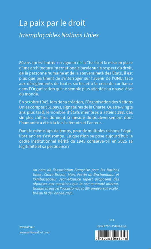 Au nom de l’Association Française pour les Nations Unies, Claire Brisset, Marc Perrin de Brichambaut et l’Ambassadeur Jean-Maurice Ripert proposent des réponses aux questions que la communauté internationale se pose à l’occasion de ce 80e anniversaire célébré au fil de l’année 2025.