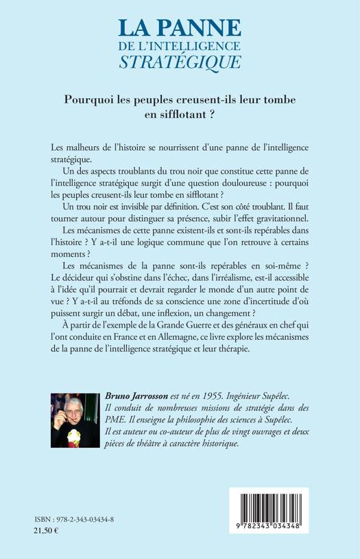 Les malheurs de l'histoire se nourrissent d'une panne de l'intelligence stratégique. Les mécanismes de cette panne existent-ils et sont-ils repérables dans l'histoire ? Y a-t-il une logique commune que l'on retrouve à certains moments ? A partir de l'exemple de la Grande Guerre et des généraux en chef qui l'ont conduite en France et en Allemagne, ce livre explore les mécanismes de la panne de l'intelligence stratégique et leur thérapie.
