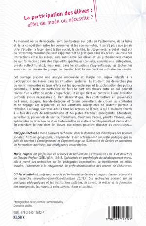 Au moment où les démocraties sont confrontées aux défis de l'extrémisme, de la haine et de la compétition entre les personnes et les communautés, il paraît utile d'étudier la façon dont le lien social et la citoyenneté peuvent s'apprendre et se pratiquer à l'école. Cet ouvrage propose une analyse élargie des enjeux relatifs à la participation des élèves dans les situations scolaires en se reposant sur des contributions de différents pays européens pour croiser les contextes et dégager les régularités et variations de l'enseignement.