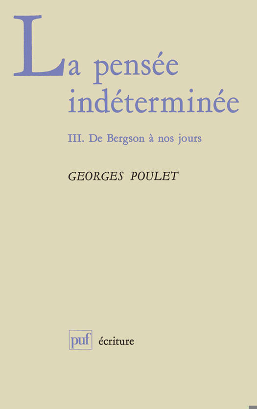 Ce livre est le troisième du triptyque qui constitue La pensée indéterminée, il est consacré au XXe siècle. Comme dans les deux volumes précédents, Georges Poulet cherche à y dégager chez tous les auteurs étudiés, qu’ils soient romanciers, poètes, critiques, essayistes, et quelle que soit la variété de leurs expériences, un caractère commun, celui de l’indétermination. Il s’agit d’analyser ces moments où se perçoit l’être profond, en deçà de toutes les déterminations particulières.