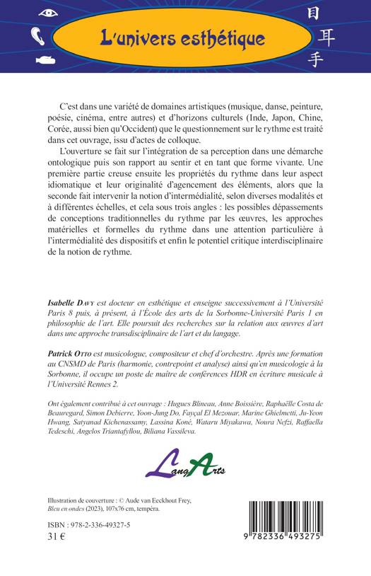 C'est dans une variété de domaines artistiques (musique, danse, peinture, poésie, cinéma, entre autres) et d'horizons culturels (Inde, Japon, Chine, Corée, aussi bien qu'Occident) que le questionnement sur le rythme est traité dans cet ouvrage, issu d'actes de colloque. L'ouverture se fait sur l'intégration de sa perception dans une démarche ontologique puis son rapport au sentir et en tant que forme vivante. Une première partie creuse ensuite les propriétés du rythme dans leur aspect idiomatique et leur originalité d'agencement des éléments, alors que la seconde fait intervenir la notion d'intermédialité, selon diverses modalités et à différentes échelles, et cela sous trois angles: les possibles dépassements de conceptions traditionnelles du rythme par les oeuvres, les approches matérielles et formelles du rythme dans une attention particulière à l'intermédialité des dispositifs et enfin le potentiel critique interdisciplinaire de la notion de rythme.