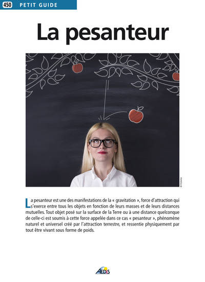 Ouvrage de vulgarisation sous forme de dépliant qui synthétise les bases scientifiques de la force d'attraction qui s'exerce entre les objets sur Terre. Sont ainsi expliqués la différence poids et masse, les incidences de la pesanteur sur la vie quotidienne, la pression atmosphérique, les mouvements planétaires et les voyages interstellaires.