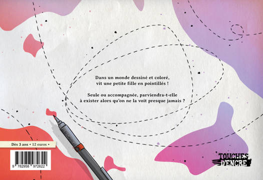 Dans un monde dessiné et coloré, vit une petite fille en pointillés ! Seule ou accompagnée, parviendra-t-elle à exister alors qu’on ne la voit presque jamais?