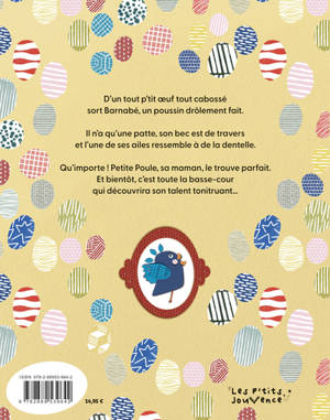 D’un tout p’tit œuf tout cabossé sort Barnabé, un poussin drôlement fait.