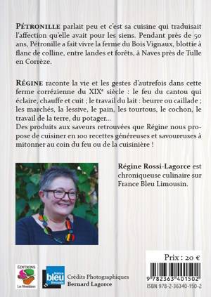 Pétronille habitait la ferme du Bois Vignaux. Chaque jour, chaque semaine, étaient rythmés par le travail de la ferme. La rencontre de Renaud, qui fait vivre aujourd’hui le Bois Vignaux, a permis à l’auteur de découvrir Pétronille. Par cette histoire, Régine Rossi-Lagorce la ressuscite et lui rend hommage. Elle raconte la vie quotidienne dans une ferme corrézienne d’autrefois : le feu du cantou qui éclaire, chauffe et cuit ; le travail du lait : beurre ou caillade ; les marchés, la lessive, le pain, les tourtous, le cochon, le travail de la terre et le potager. Cent recettes savoureuses et généreuses de Régine viennent compléter cette belle histoire.