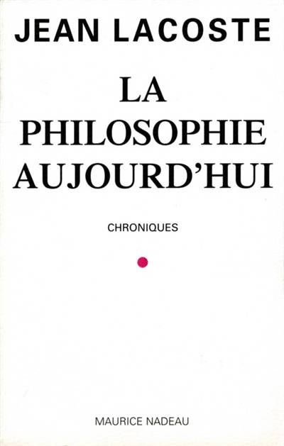La Philosophie aujourd'hui qui, sans négliger la pensée française dans sa permanence et sa diversité (d'Althusser à Derrida, de Sartre à Deleuze), accorde une place de choix aux traductions de l'allemand (Cassirer, Heidegger, Habermas, etc.) et aux auteurs de la philosophie anglo-saxonne comme John Rawls, Putnam ou Popper. 248 p. (1997)Depuis le numéro du 16 janvier 1973 de La Quinzaine littéraire, l'auteur rend compte à sa guise des ouvrages de philosophie qui paraissent et que, selon ses critères, il juge importants.