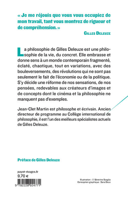 L'une des meilleures introduction à la pensée de Gilles Deleuze, qui est une philosophie de la vie, du concret. Elle embrasse et donne sens à un monde contemporain fragmenté, éclaté, chaotique, tout en variations, avec des bouleversements, des révolutions qui ne sont pas seulement le fait de l'économie ou de la politique. S'y décide une réforme de nos sensations, de nos pensées, redevables aux créateurs d'images et de concepts dont le cinéma et la philosophie ne manquent pas d'exemples.