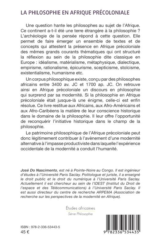 Une question hante les philosophes au sujet de l'Afrique. Ce continent a-t-il été une terre étrangère à la philosophie? L'archéologie de la pensée répond à cette question. Elle permet de faire émerger un ensemble de textes et de concepts qui attestent la présence en Afrique précoloniale des mêmes grands courants thématiques qui ont structuré la ré exion au sein de la philosophie dite classique en Europe: idéalisme, matérialisme, métaphysique, dialectique, empirisme, rationalisme, épicurisme, scepticisme, stoïcisme, existentialisme, humanisme etc. Un corpus philosophique existe, conçu par des philosophes africains entre 3400 av. JC et 1700 ap. JC. On retrouve ainsi en Afrique précoloniale un discours en philosophie qui surprend par sa modernité. Si la philosophie en Afrique précoloniale était jusque-là une énigme, celle-ci est en enfin résolue. Ce livre restitue aux Africains, aux Afro-Américains et aux Afro-Caribéens la matière de leur conscience historique dans le domaine de la philosophie. Il leur offre l'opportunité de reconquérir l'initiative historique dans le champ de la philosophie. Le patrimoine philosophique de l'Afrique précoloniale peut donc légitimement contribuer à l'avènement d'une modernité alternative à l'impasse productiviste dans laquelle l'expérience occidentale de la modernité a conduit l'humanité.