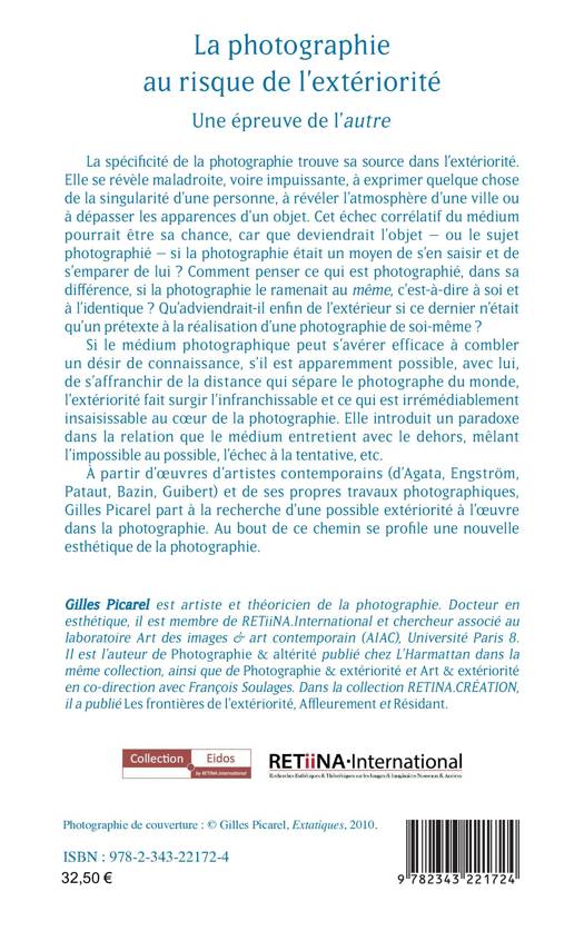La spécificité de la photographie trouve sa source dans l’extériorité. Elle se révèle maladroite, voire impuissante, à exprimer la singularité d’une personne, à révéler l’atmosphère d’une ville ou à dépasser les apparences d’un objet. Cet échec corrélatif du médium pourrait être sa chance, car que deviendrait l’objet si la photographie était un moyen de s’en saisir et de s’emparer de lui ? Comment penser ce qui est photographié si la photographie le ramenait au même, c’est-à-dire à soi et à l’identique ? Qu’adviendrait-il enfin de l’extérieur si ce n’était qu’un prétexte à la réalisation d’une photographie de soi-même ? Si la photographie peut combler un désir de connaissance, ou s’affranchir de la distance qui sépare le photographe du monde, l’extériorité fait surgir l’infranchissable et l’insaisissable au coeur de la photographie. Elle introduit un paradoxe dans la relation du médium au dehors, mêlant l’impossible au possible. À partir d’artistes contemporains (d’Agata, Engström, Pataut, Bazin, Guibert) et de ses propres travaux, l’auteur part à la recherche d’une possible extériorité et d’une nouvelle esthétique de la photographie.