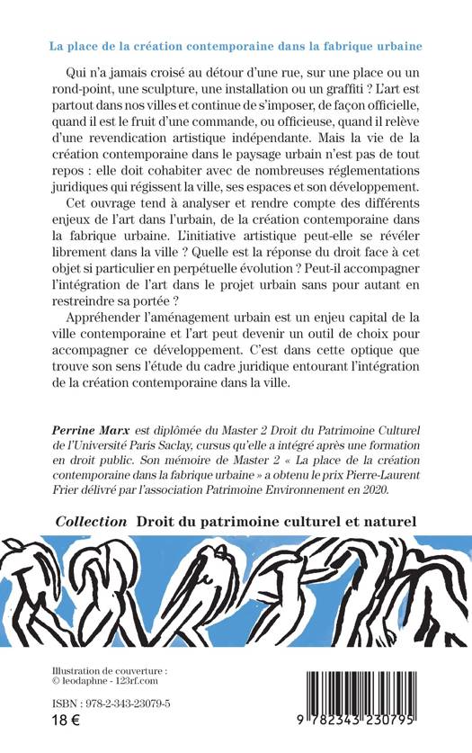L'art est partout dans nos villes et continue de s'imposer, de façon officielle, quand il est le fruit d'une commande, ou officieuse, quand il relève d'une revendication artistique indépendante. Mais la vie de la création contemporaine dans le paysage urbain n'est pas de tout repos: elle doit cohabiter avec de nombreuses réglementations juridiques qui régissent la ville, ses espaces et son développement. Cet ouvrage tend à analyser et rendre compte des différents enjeux de l'art dans l'urbain, de la création contemporaine dans la fabrique urbaine. L'initiative artistique peut-elle se révéler librement dans la ville ? Quelle est la réponse du droit face à cet objet si particulier en perpétuelle évolution ? Peut-il accompagner l'intégration de l'art dans le projet urbain sans pour autant en restreindre sa portée ? Appréhender l'aménagement urbain est un enjeu capital de la ville contemporaine et l'art peut devenir un outil de choix pour accompagner ce développement. C'est dans cette optique que trouve son sens l'étude du cadre juridique entourant l'intégration de la création contemporaine dans la ville.