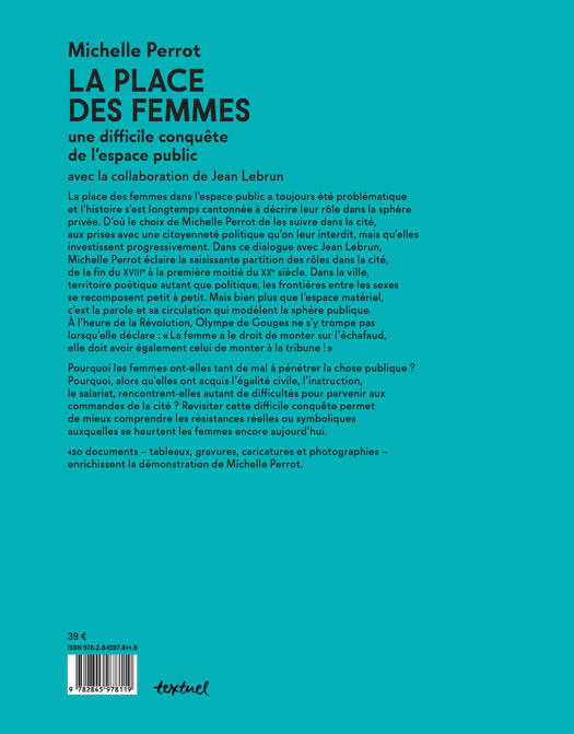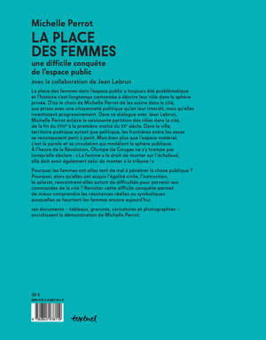 Voici un beau livre original où l'image magnifie la si brillante démonstration de Michelle Perrot, l'une des plus grandes historiennes contemporaines, pionnière dans l'histoire des femmes et toujours présente sur le terrain des combats contemporains. Si l'histoire s'est d'abord attachée à décrire le rôle privé des femmes, Michelle Perrot les suit ici dans la cité, dans la nation aux prises avec une citoyenneté qui leur échappe mais qu'elles investissent progressivement. De la Révolution aux débuts du 20ème siècle, Michelle Perrot analyse dans ce dialogue avec Jean Lebrun la résistance à la présence féminine au coeur de la cité.