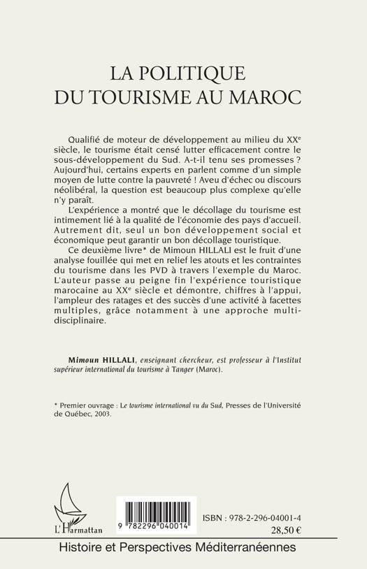 Qualifié de moteur de développement au milieu du XXè siècle, le tourisme était censé lutter efficacement contre le sous-développement du Sud. A-t-il tenu ses promesses ? Ce livre est le fruit d'une analyse fouillée qui met en relief les atouts et les contraintes du tourisme dans les PVD à travers l'exemple du Maroc. L'auteur passe au peigne fin l'expérience touristique marocaine du XXè siècle et démontre l'ampleur des ratages et des succès d'une activité à facettes multiples.