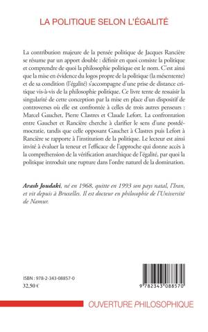 La contribution majeure de la pensée politique de Jacques Rancière se résume par un apport double : définir en quoi consiste la politique et comprendre de quoi la philosophie politique est le nom. C'est ainsi que la mise en évidence du logos propre de la politique (la mésentente) et de sa condition (l'égalité) s'accompagne d'une prise de distance critique vis-à-vis de la philosophie politique. Ce livre tente de ressaisir la singularité de cette conception par la mise en place d'un dispositif de controverses où elle est confrontée à celles de trois autres penseurs : Marcel Gauchet, Pierre Clastres et Claude Lefort.