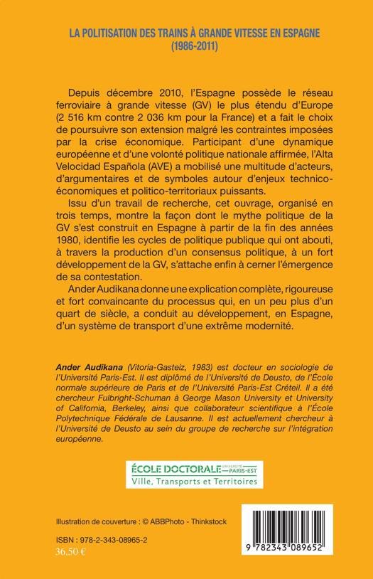Depuis décembre 2010, l'Espagne possède le réseau ferroviaire à grande vitesse (GV) le plus étendu d'Europe et a fait le choix de poursuivre son extension malgré les contraintes imposées par la crise économique. Issu d'un travail de recherche, cet ouvrage montre la façon dont le mythe politique de la GV s'est construit en Espagne à partir de la fin des années 1980, identifie les cycles de politique publique qui ont abouti à un fort développement de la GV et s'attache à cerner l'émergence de sa contestation.
