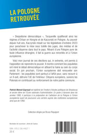 « Despotisme démocratique », Tocqueville qualifierait ainsi les régimes d’Orban en Hongrie et de Kaczynski en Pologne. Au pouvoir depuis huit ans, Kaczynski misait sur les législatives d’octobre 2023 pour parachever la mise sous tutelle des juges, des médias et de l’activité citoyenne dans tout le pays. Rêvant d’une Pologne pure de toute influence étrangère, il fait la guerre aux minorités et à l’Union européenne. Voici mon journal de ces élections qui, in extremis, ont permis à l’opposition de reprendre le pouvoir. Il montre comment les populistes ont miné le débat démocratique en attisant la haine au sein du corps social. En juin prochain, l’Union européenne doit renouveler son Parlement : les populistes sont partout à l’affût pour, sans recourir à un X-exit, détruire l’UE de l’intérieur. Citoyens européens, suivons les Polonais en contribuant au renforcement de notre patrie commune.