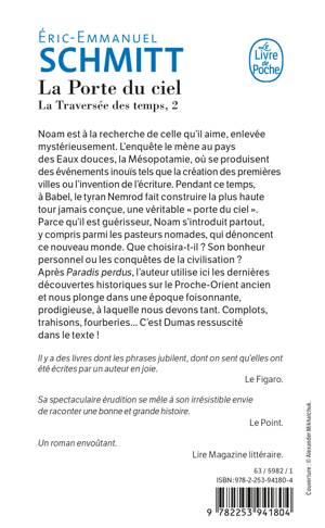 Noam est à la recherche de celle qu'il aime, enlevée mystérieusement. L'enquête le mène au pays des Eaux douces – la Mésopotamie – où se produisent des événements inouïs, tels que la création des premières villes ou l'invention de l'écriture. À Babel, le tyran Nemrod fait construire la plus haute tour jamais conçue, une véritable « porte du ciel ». Grâce à sa fonction de guérisseur, Noam s'introduit dans tous les milieux, auprès des ouvriers, chez la reine Kubaba, jusqu'aux pasteurs nomades. Que choisira-t-il ? Son bonheur personnel ou les conquêtes de la civilisation ?... Après Paradis perdus, l’auteur utilise ici les dernières découvertes historiques sur l'Orient ancien et nous plonge dans une époque foisonnante, prodigieuse, à laquelle nous devons tant. Complots, trahisons, fourberies... C’est Dumas ressuscité dans le texte !