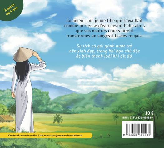 Comment une jeune fille qui travaillait comme porteuse d’eau devint belle alors que ses maîtres cruels furent transformés en singes à fesses rouges. Sự tích cô gái gánh nước trở nên xinh đẹp, trong khi bọn chủđộc ác biến thành loài khỉđít đỏ.