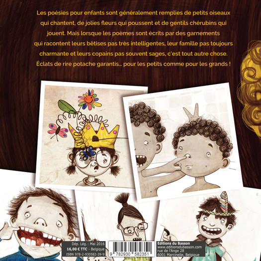 Les poésies pour enfants sont généralement remplies de petits oiseaux qui chantent, de jolies fleurs qui poussent et de gentils chérubins qui jouent. Mais lorsque les poèmes sont écrits par des garnements qui racontent leurs bêtises pas très intelligentes, leur famille pas toujours charmante et leurs copains pas souvent sages, c’est tout autre chose. Éclats de rire potache garantis… pour les petits comme pour les grands !