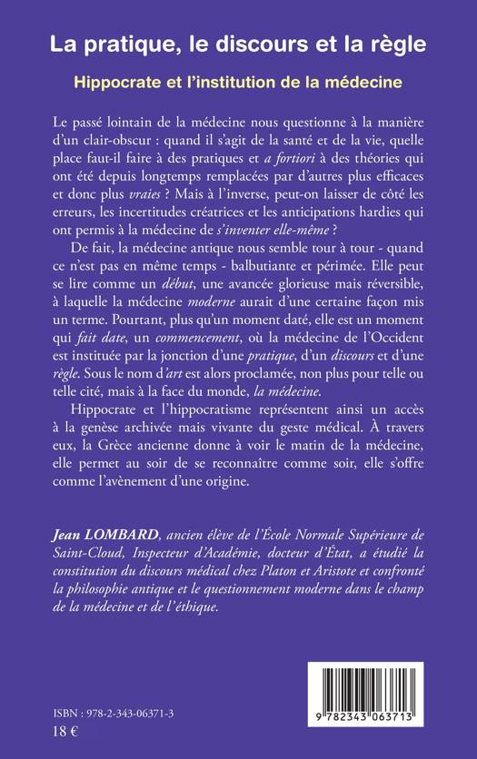 La médecine antique nous semble balbutiante et périmée. Elle peut se lire comme un début, une avancée glorieuse mais réversible à laquelle la médecine moderne aurait d'une certaine façon mis un terme. Pourtant, plus qu'un moment daté elle est un commencement, où la médecine de l'Occident est instituée. Hippocrate représente un accès à la genèse archivée mais vivante du geste médical.