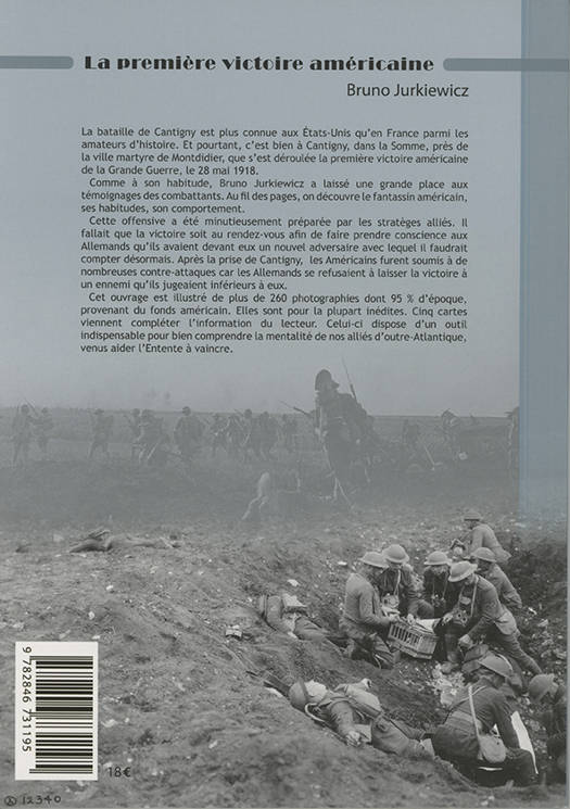 La bataille de Cantigny est plus connue aux États-Unis qu’en France parmi les amateurs d’histoire. Et pourtant, c’est bien à Cantigny, dans la Somme, près de la ville martyre de Montdidier, que s’est déroulée la première victoire américaine de la Grande Guerre, le 28 mai 1918. Comme à son habitude, Bruno Jurkiewicz a laissé une grande place aux témoignages des combattants. Au fil des pages, on découvre le fantassin américain, ses habitudes, son comportement. Cette offensive a été minutieusement préparée par les stratèges alliés. Il fallait que la victoire soit au rendez-vous afin de faire prendre conscience aux Allemands qu’ils avaient devant eux un nouvel adversaire avec lequel il faudrait désormais compter. Après la prise de Cantigny, les Américains furent soumis à de nombreuses contre-attaques, car les Allemands se refusaient à laisser la victoire à un ennemi qu’ils jugeaient inférieurs à eux.