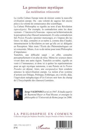 La vieille Culture Europe tente de résister contre la nouvelle civilisation europe. Ou: une volonté de sagesse fait encore pièce à la volonté de connaissance dite scientifique. La Culture Philosophie se signifie au nom d'une Révélation. Par exemple, la contradiction entre les deux vecteurs repose sur la théorisation de la perception (chez Husserl notamment). Et cette contradiction fait Proton Pseudos (premier mensonge), et s'impose dès les Grecs. Ici déjà, connaître et co-naître à, comme dira Claudel, intrastructurent la Révélation en tant qu'elle est ici déléguée en Perception. Mais toute l'École des Phénoménologues est ici concernée. Mieux, il en va de même pour toute Philosophie d'importance. Toutefois, une difficulté surgit: en effet, connaître perceptuellement n'est plus de mise. Même les sciences dures vivent dans une autre région. Toutefois co-naître, signifie en venir à l'immanence, et donc ici à quitter les représentations pour un agir mystique autonome, à une Pensée où le Proton Pseudos est déjoué. Ainsi, une europanalyse bien conduite annonce la néocivilisation europe.