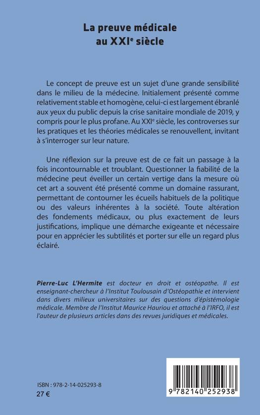 Le concept de preuve est un sujet d’une grande sensibilité dans le milieu de la médecine. Initialement présenté comme relativement stable et homogène, celui-ci est largement ébranlé aux yeux du public depuis la crise sanitaire mondiale de 2019, y compris pour le plus profane. Au XXIe siècle, les controverses sur les pratiques et les théories médicales se renouvellent, invitant à s’interroger sur leur nature. Une réflexion sur la preuve est de ce fait un passage à la fois incontournable et troublant. Questionner la fiabilité de la médecine peut éveiller un certain vertige dans la mesure où cet art a souvent été présenté comme un domaine rassurant, permettant de contourner les écueils habituels de la politique ou des valeurs inhérentes à la société. Toute altération des fondements médicaux, ou plus exactement de leurs justifications, implique une démarche exigeante et nécessaire pour en apprécier les subtilités et porter sur elle un regard plus éclairé.