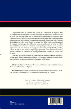L'ouvrage réunit des études de linguistes et d'historiens des religions, qui tous travaillent sur les textes ou des documents épigraphiques. Les énoncés de prières attestés dans les langues indo-européennes sont ainsi étudiés d'un point de vue pluridisciplinaire. L'ouvrage aborde la littérature de l'Inde classique, les inscriptions achéménides, les langues celtiques, la prière hittite, la prière latine, les langues italiques, la littérature hellénique.