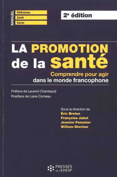 « Cet impressionnant ouvrage se place d'emblée comme un document de référence dans et pour le monde francophone. Non pas contre la déferlante anglo-saxonne et nord américaine, mais en proposant une lecture différente de la promotion de la santé, adaptée à des systèmes politiques, à des univers culturels et sociaux différents. » (Extrait de la préface de Laurent Chambaud)