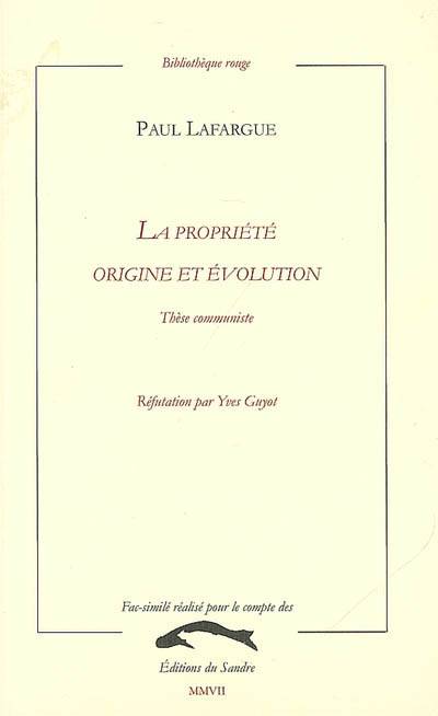 En 1895, Paul Lafargue (1842-1911), gendre de Marx et fondateur avec Jules Guesde du POF, exerce la fonction de député de Lille. Cette « thèse communiste » est en réalité un long essai sur la propriété en France. Mais le livre intéresse aussi par sa structure (ancienne) de disputatio : Yves Guyot (1843-1928), ardent défenseur du libre-échange, tente de réfuter les propositions d'un Lafargue, qui se plie avec bonheur à l'exercice.