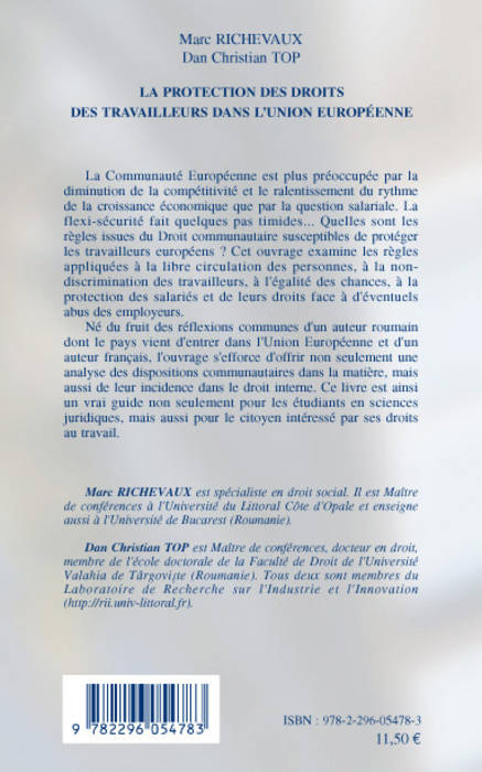 La Communauté Européenne est plus préoccupée par la diminution de la compétitivité et le ralentissement du rythme de la croissance économique que par la question salariale. Quelles sont les règles issues du Droit communautaire susceptibles de protéger les travailleurs européens ? Cet ouvrage examine les règles appliquées à la libre circulation des personnes, à la non-discrimination des travailleurs, à l'égalité des chances, à la protection des salariés et de leurs droits face à d'éventuels abus des employeurs.
