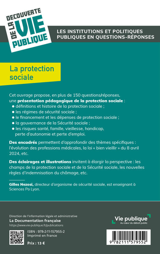 Cet ouvrage décrit précisément le système de protection sociale français en 2024, avec différents objectifs : – rendre accessible un système complexe car ancien et composé de différents risques (santé, accidents du travail…) – s’informer sur les réformes récentes importantes (dont celles des retraites et de l’indemnisation du chômage de 2023) – proposer une mise en perspective : par exemple, quelle prise en charge pour l’autonomie/dépendance des personnes âgées ?