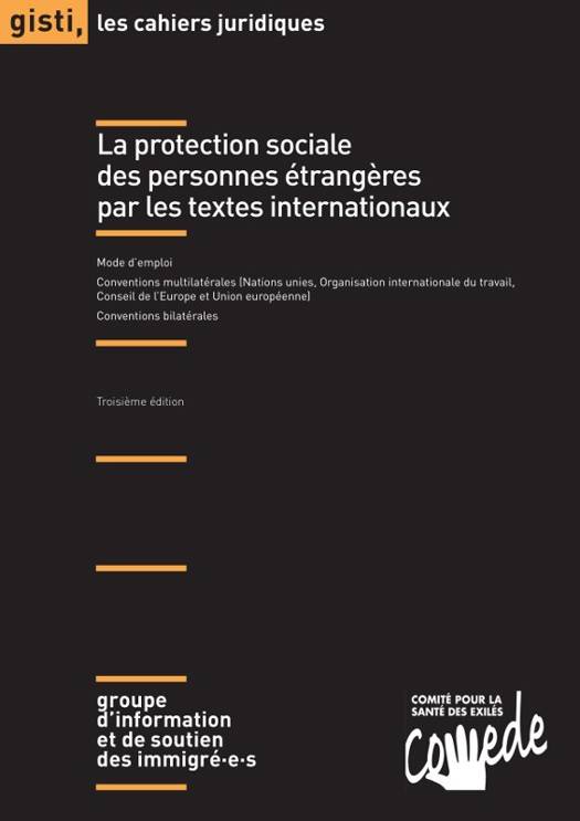 Ce cahier juridique, coécrit par le Gisti et le Comede, vise à promouvoir les textes internationaux pour défendre le droit à la protection sociale des personnes étrangères : textes des Nations unies (ONU), de l’Organisation internationale du travail (OIT), du Conseil de l’Europe (dont CEDH), de l’Union européenne, conventions bilatérales de sécurité sociale et autres traités bilatéraux.