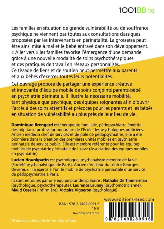 Des familles en période périnatale, en situation de grandes vulnérabilités ou souffrance psychique ne viennent pas aux consultations classiques pouvant être proposées par les intervenants en périnatalité. La grossesse peut être mis à mal et le bébé entravé dans son développement. « Aller vers » les familles peut permettre l’émergence d’une demande grâce à une concertation clinique et un « art des ponts », s’appuyant sur les pratiques de réseaux. Ce tissage de liens et de soutien peut permettre aux parents et aux bébés d’exercer toutes leurs potentialités constructives. La mobilité des thérapeutes, tant physique que psychique, est essentielle pour la co-construction d’un cadre de soins sur mesure avec ces familles.